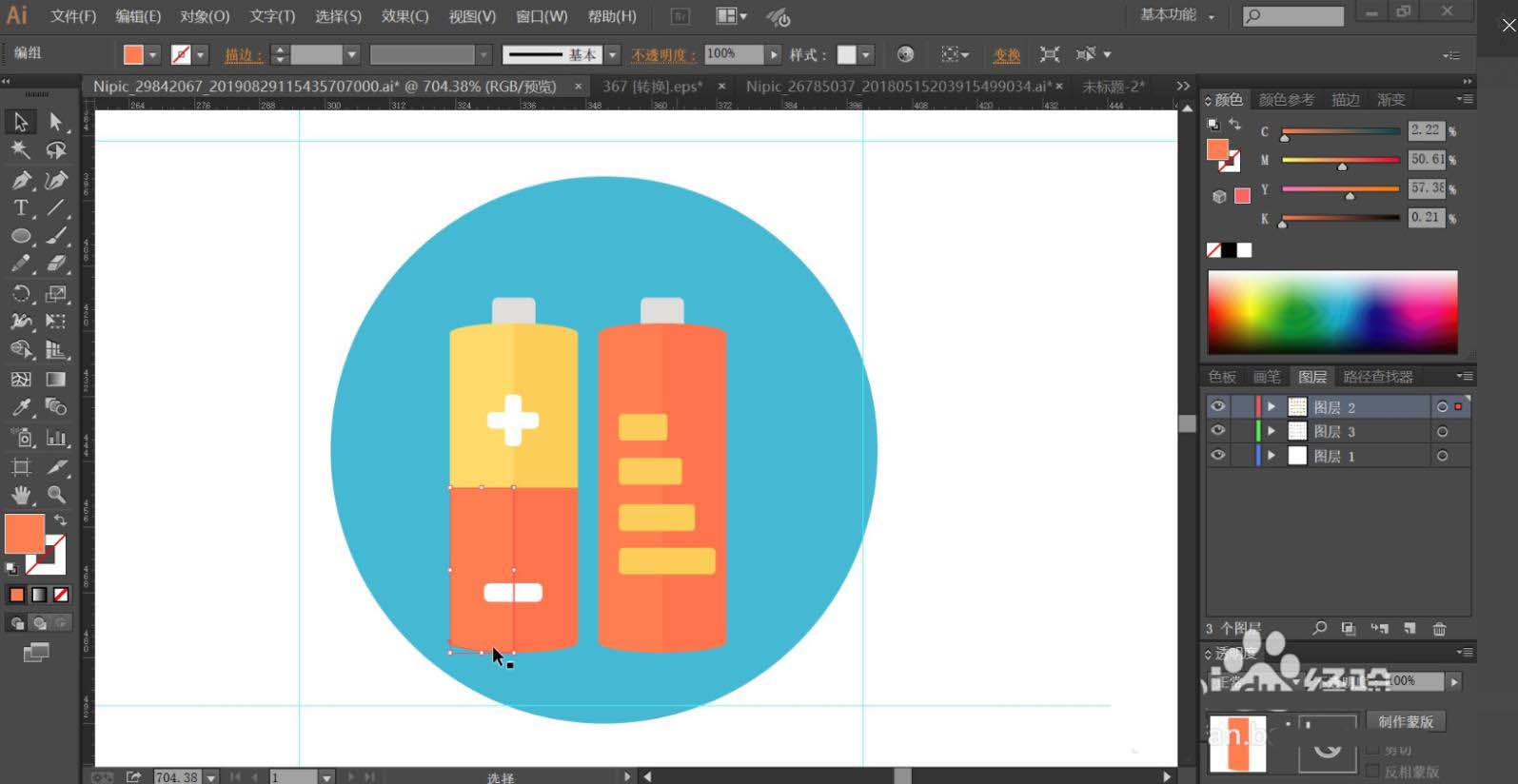 4、使用网格工具点击电源的桔黄色亮光区域让其呈现渐变色,完成电池图标设计。
