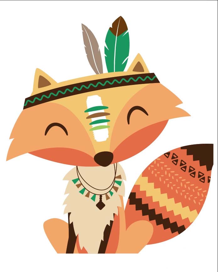 1、使用钢笔画出狐狸的面部表情,再画出它的头上的羽毛的细节,还有身体坐立的动作,胸前的项链,身后的大尾巴以及上面的图案路径。