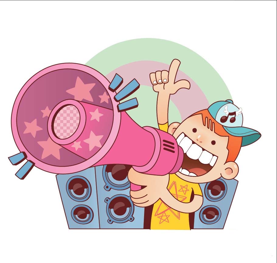有了好的消息需要宣传出去,该怎么绘制宣传插画,今天,我们就来画一画宣传人物画,从中学习一下喇叭与宣传人物的动作画法,体会使用粉红色、黄色、青色、蓝色之间的搭配技巧,掌握绘制背景与人物的表情的方法,下面我们就来看看详细的教程。