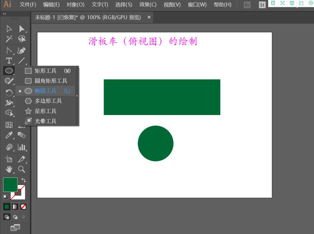 3、利用椭圆工具绘制一个正圆形,其直径与长方形的宽一致;