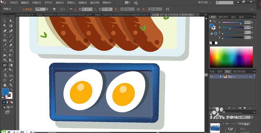 烤肠是一种美味的肉食,搭配鸡蛋的烤肠会更加的好吃,想要绘制这样的美食套餐,该怎么绘制呢?今天,我们就来画一画烤肠鸡蛋,从中学习一下烤肠的画法,鸡蛋的画法,掌握使用红棕色与黄棕色的搭配,体会一下网格工具在绘制食材中的作用,详细请看下文介绍。