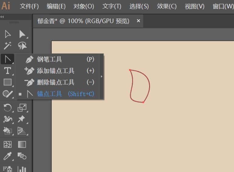 2、使用“钢笔工具”和“锚点工具”绘制出郁金香的一片花瓣;