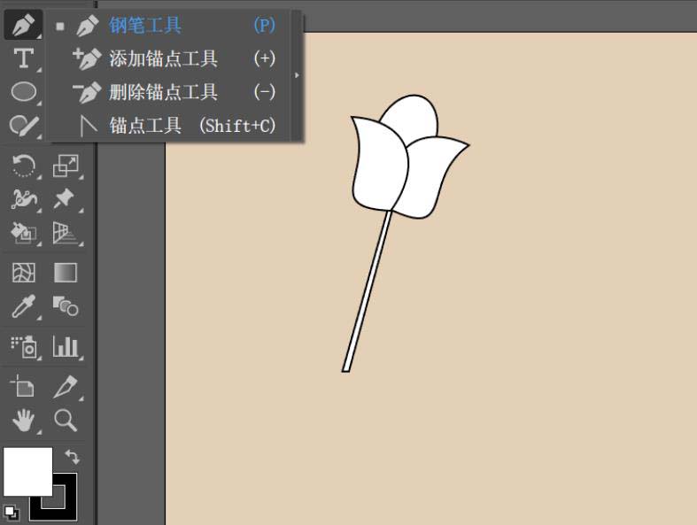 4、使用“钢笔工具”绘制一个小的闭合图形作为花茎;