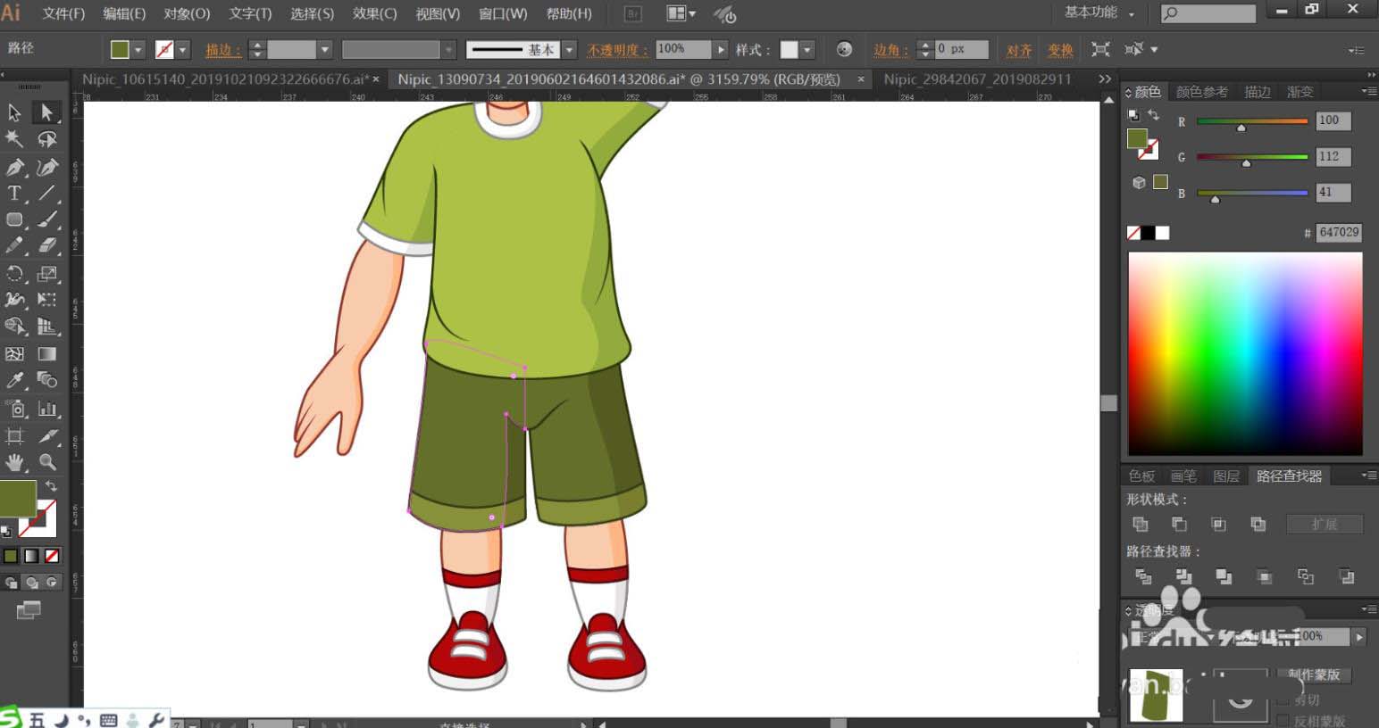 7、小孩的短裤用深绿色填充,鞋子用红色与白色搭配填充,袜子也是红白色的效果,完成过山车图片设计。