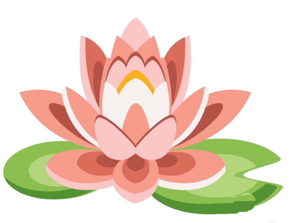 5、红莲花上方的花瓣,我们改变搭配方法,使用浅粉红与白色搭配填充正面中间的花瓣,最上方的花瓣用橙黄色与白色搭配填充呈现花蕊的细节。