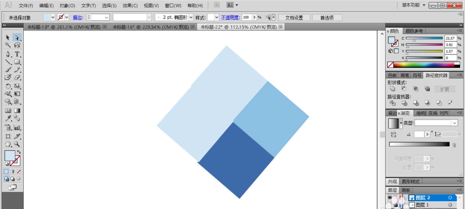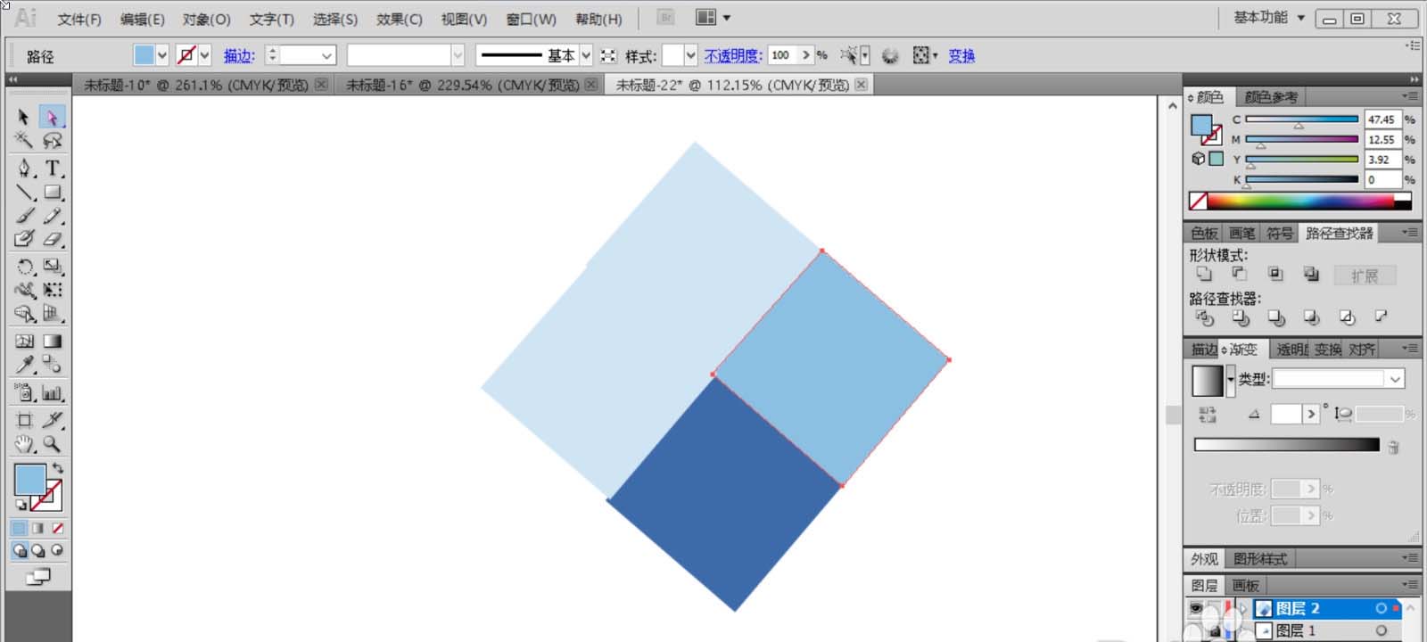 1、使用钢笔画出四个小正方形,让其组成一个大的正方形,再分别用不同的蓝色填充。