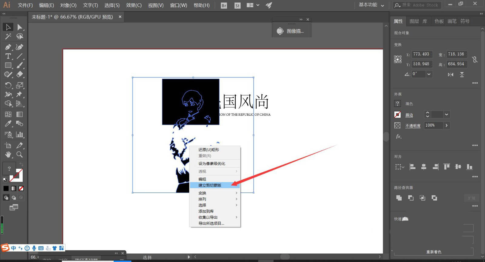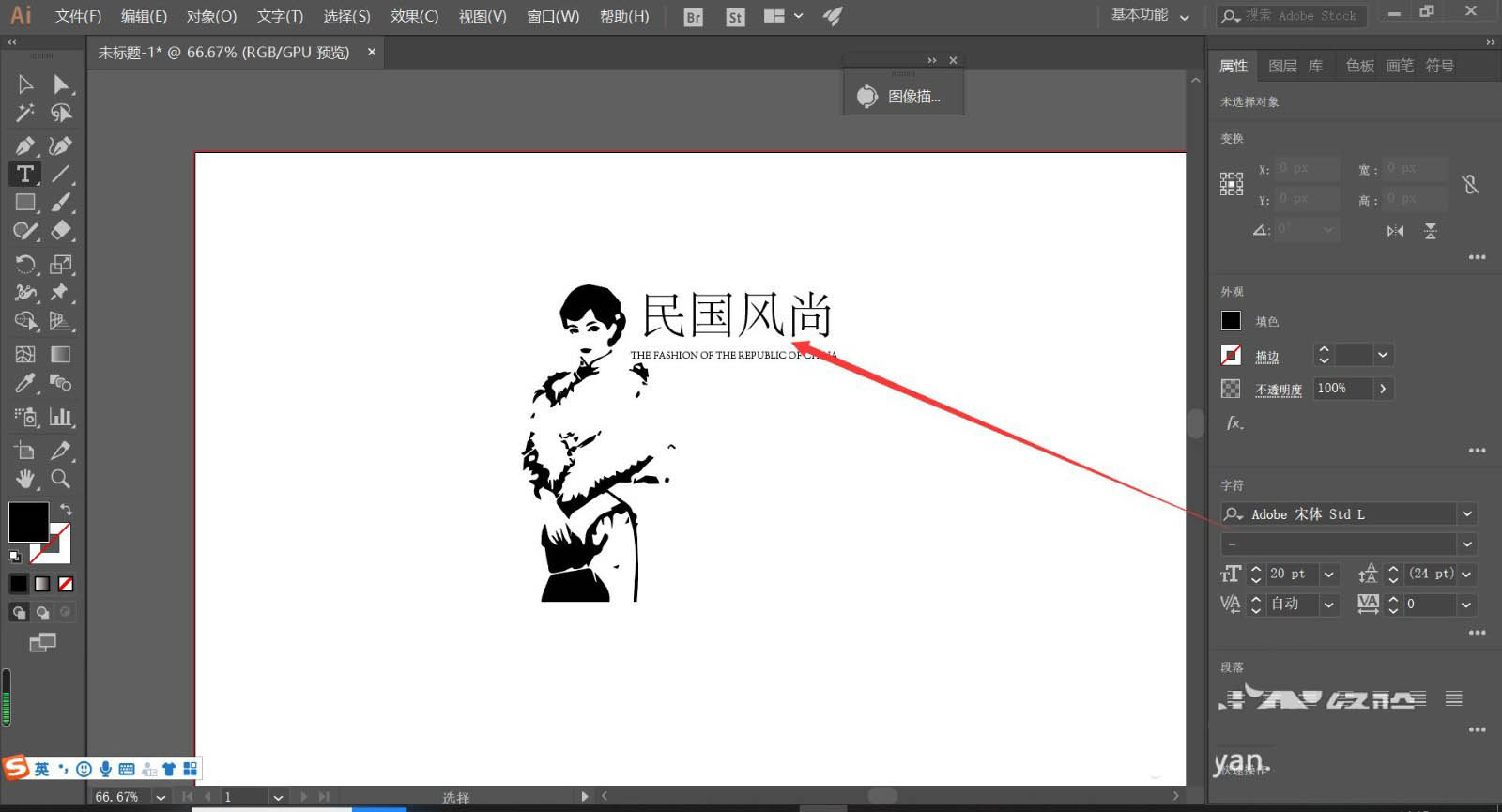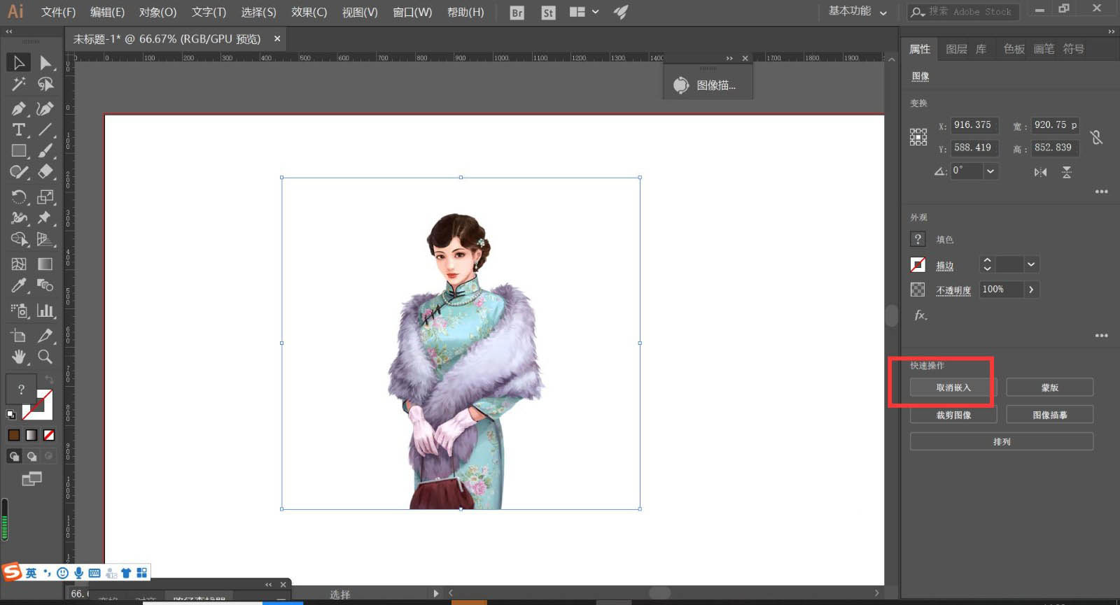 1、打开ai软件,导入跟民国有关的元素素材(我这里选择了民国时期的女子形象)嵌入