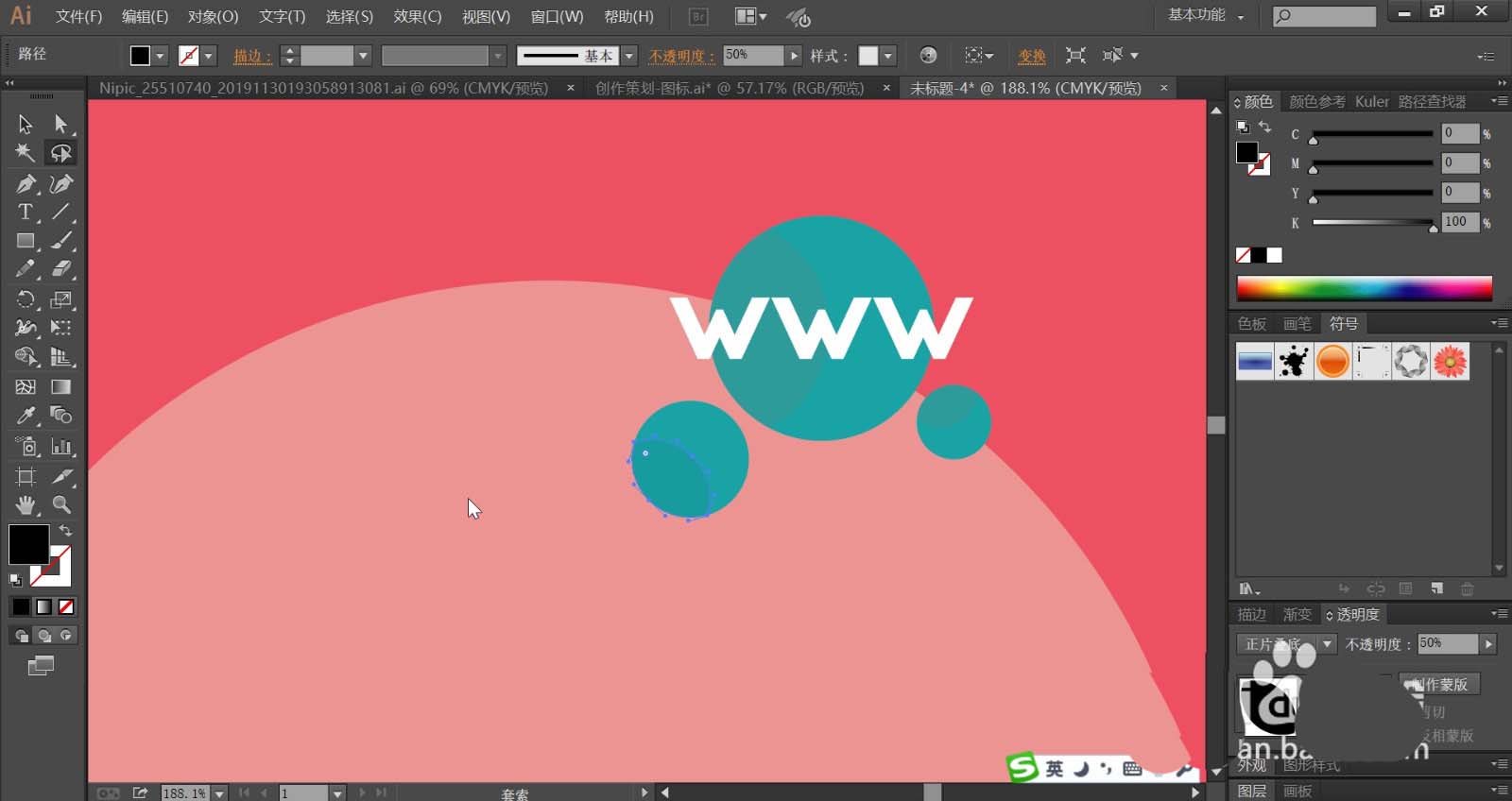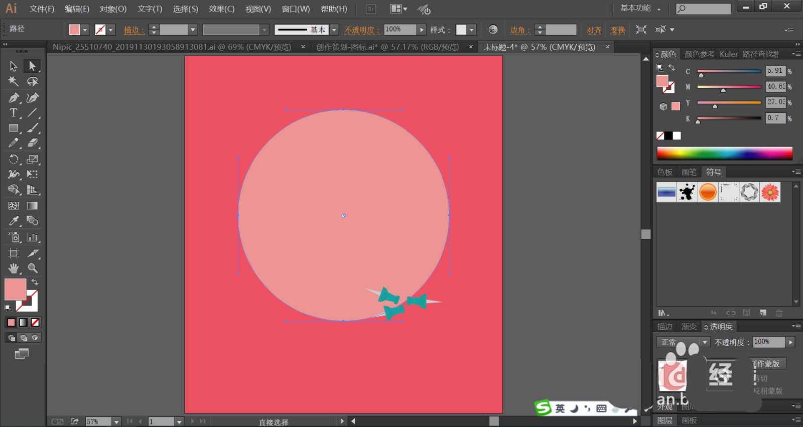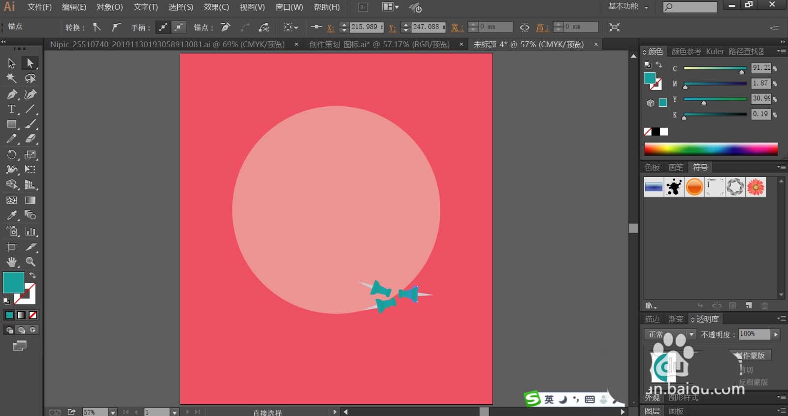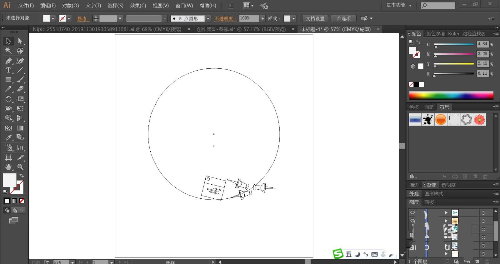 1、使用钢笔画出背景所在的矩形与圆形路径,再画出圆形下方的小墙钉的基本结构路径。