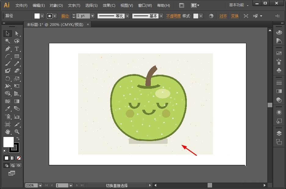 2、那么,我们可以先用钢笔路径,将里面的苹果,给选定路径。