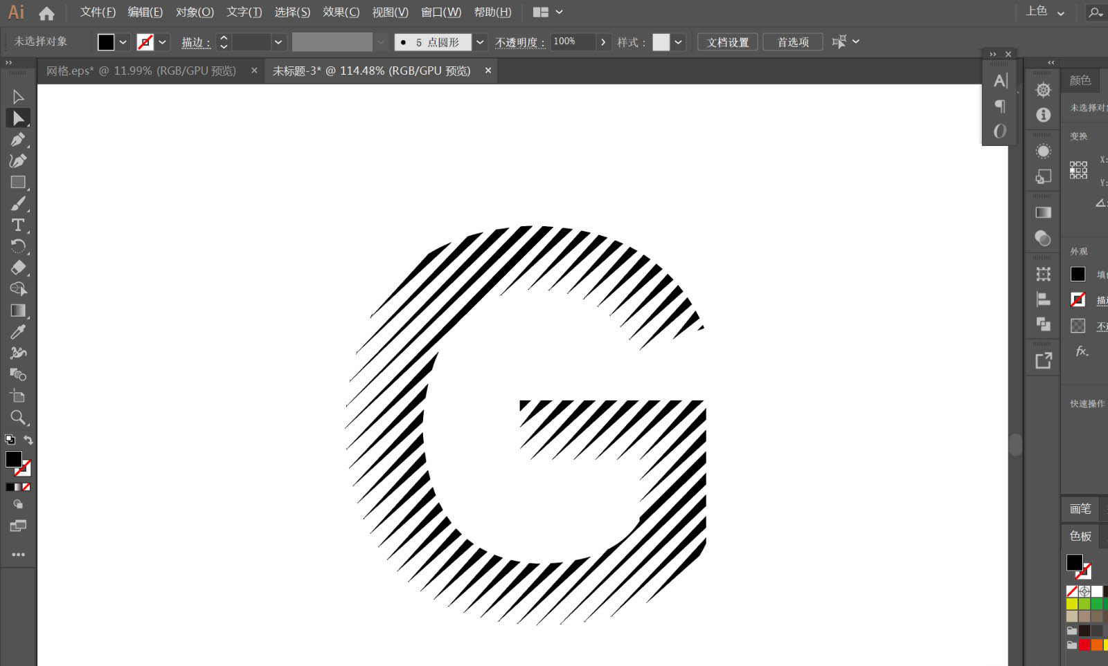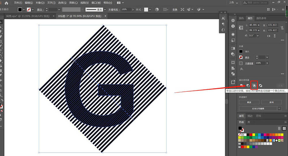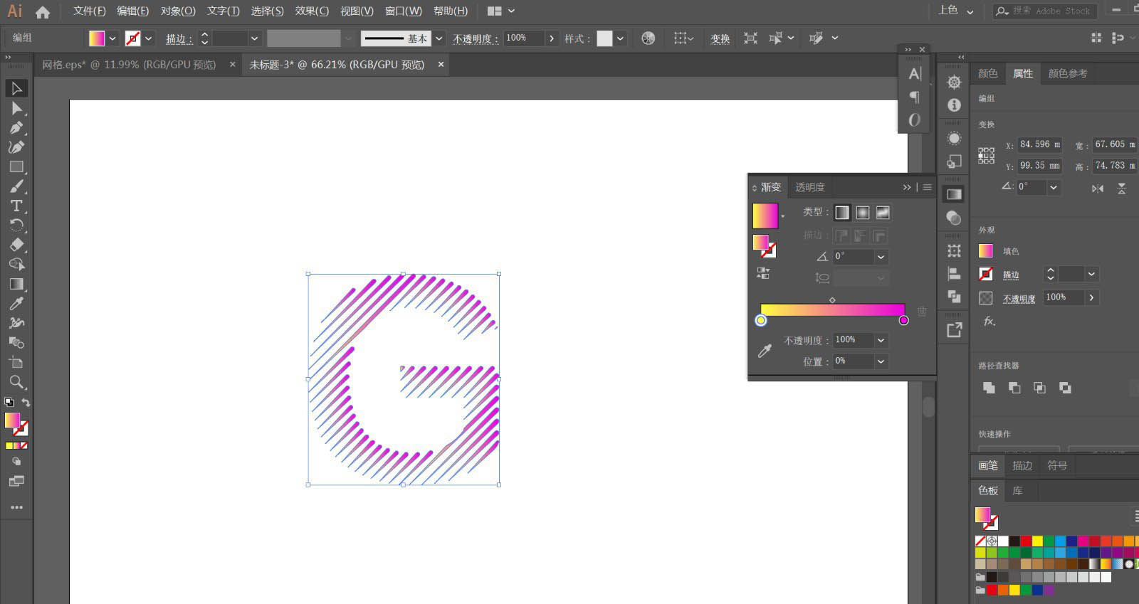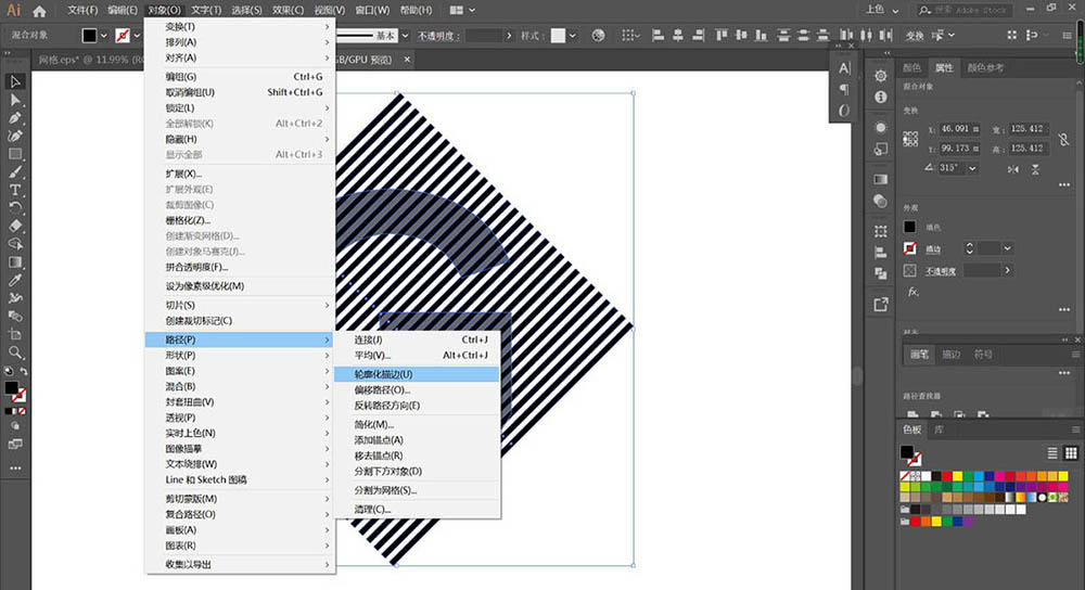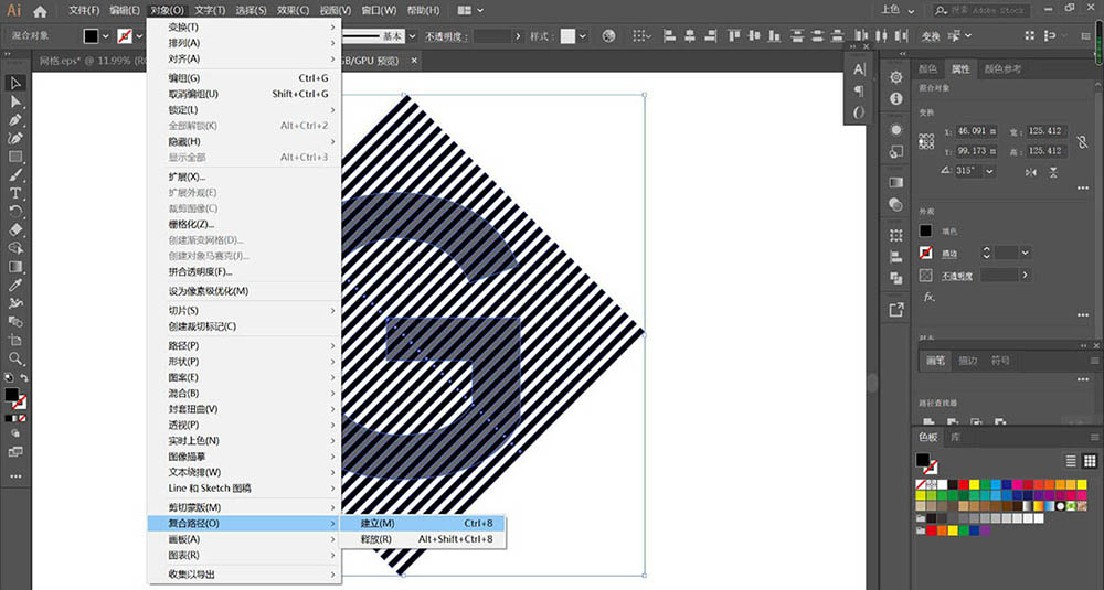 5、属性面板降低文字不透明度,全选文字和矩形,执行“对象”——“路径”——“选择轮廓化描边”,执行“对象”——“复合路径”——“建立”