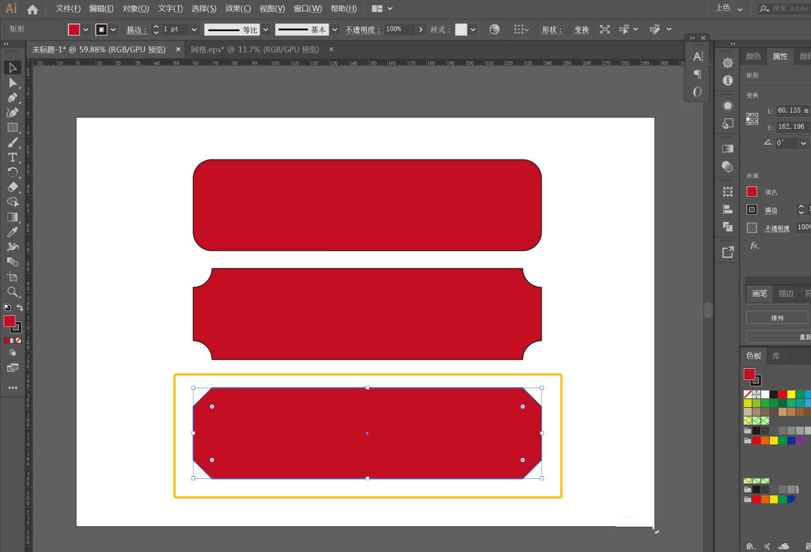 5、选择第三个矩形,按住Alt键,在此矩形任意圆点点击一次,效果如图