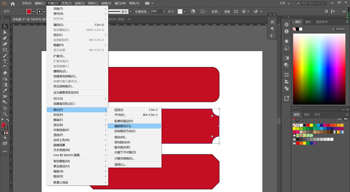 6、选择任意一个矩形,执行“对象”——“路径”——“偏移路径”,输入偏移数值,确定,将复制的图形边框换成白色,效果如图(此时我们可以看到上下左右都是等距偏移)