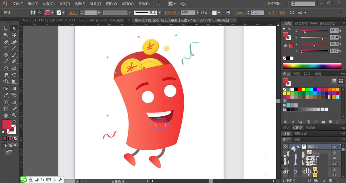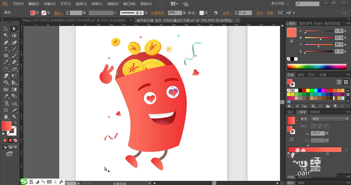 红包能够给人惊喜的感觉,如果红包能像卡通形象的角色那么生动就好了,该怎么绘制拟人化的红包呢?今天,我们就来设计一款红包的形象,从中学习一下红色渐变与金色渐变的搭配技巧,体会一下红包表情的设计方法与过程,详细请看下文介绍。