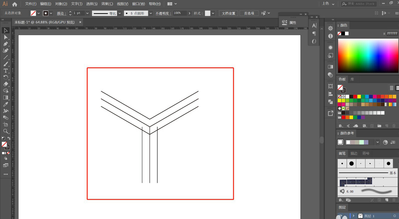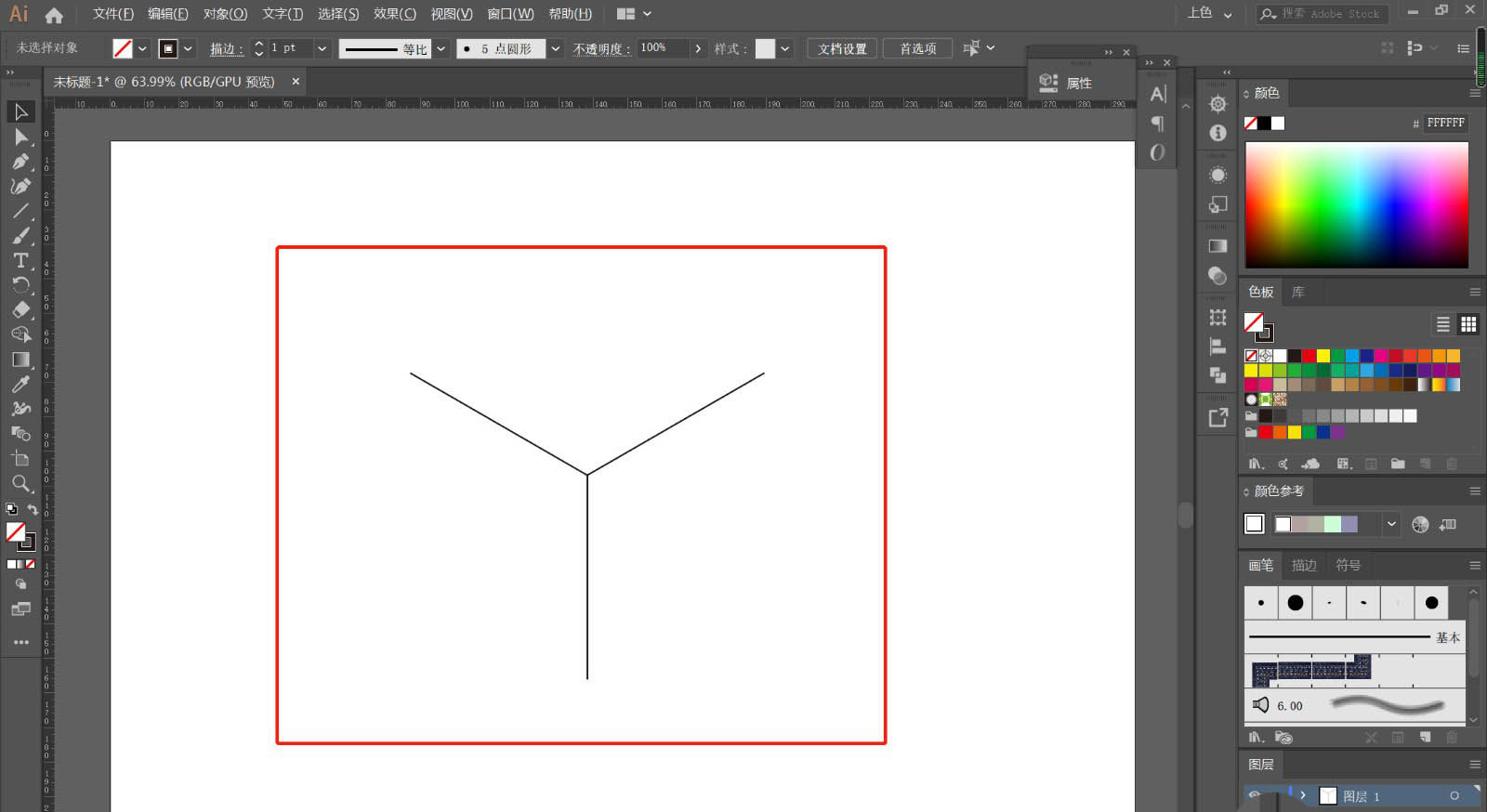 7、选择所有直线,使用形状生成器工具,在图中红线部分分别按区域涂抹,使其生成3个不同的面