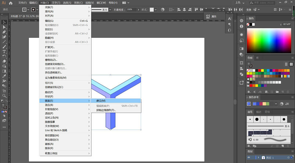9、执行“对象”——“图案”——“建立”,设置参数如图,点击完成,此时是几何图案已在色板中