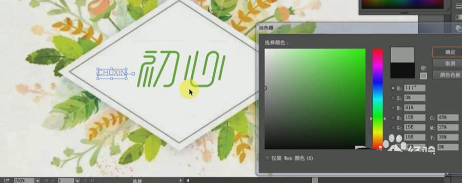 15、颜色调整为:64AD3A。使用【文本工具】输入小文字【chuxin】,字体:非衬线体即可(英文字体),颜色为:9B9B9B。