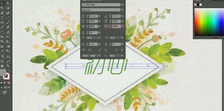 16、在字符属性里调整字间距,字间距为:3000。