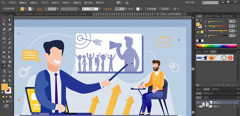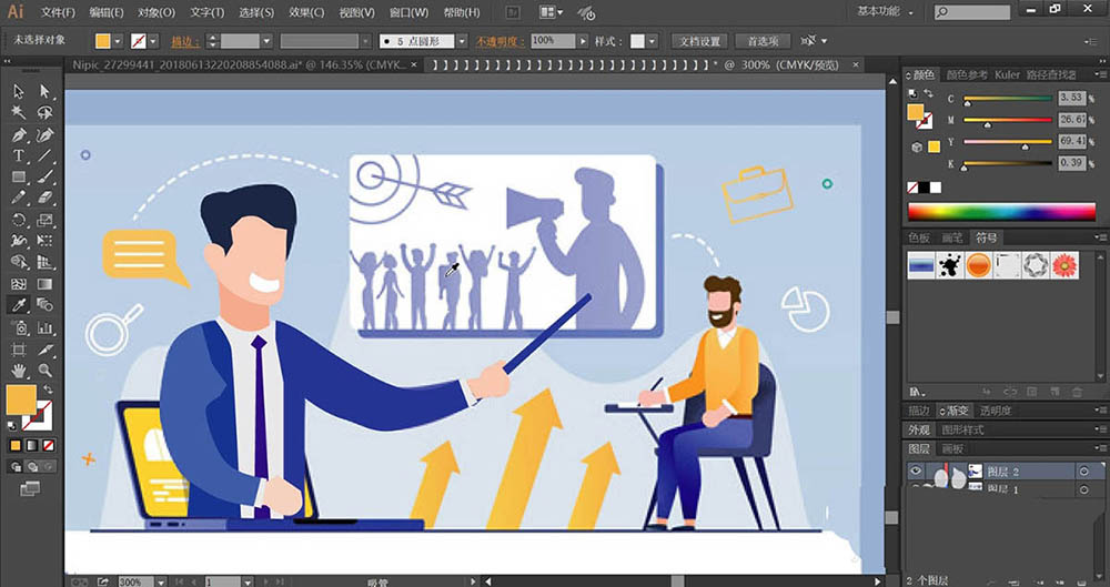 听课是职场中提升自己的重要手段,想要设计一款教育机构的海报,该怎么设计呢?今天,我们就画一画听课相关的插画,主要创意元素有老师、学生、投影、电脑以及一些相关的元素符号,详细请看下文介绍。