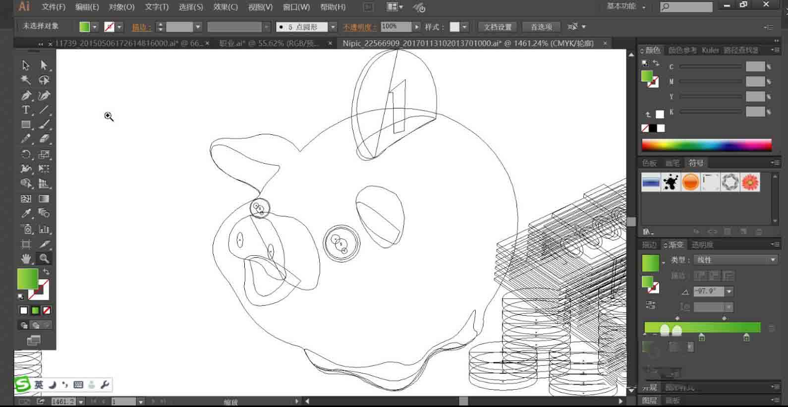 AI绘制可爱小猪存钱罐图标教程