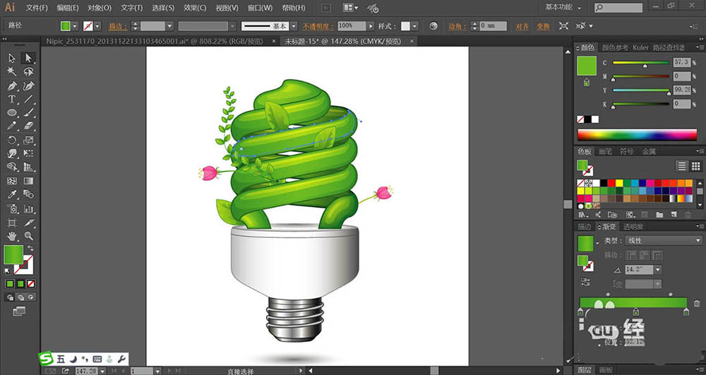 小小灯泡是人们生活中不可缺少的工具,想要使用ai设计灯泡的绿色广告,该怎么设计呢?今天,我们就来画一画灯泡创意图,主要思路是使用树叶与花朵来呈现绿色光明的理念,从中学习一下灯泡的画法,绿叶与花朵的画法,体会一下绿色与红色、品红色、灰白色搭配的技巧,详细请看下文介绍。