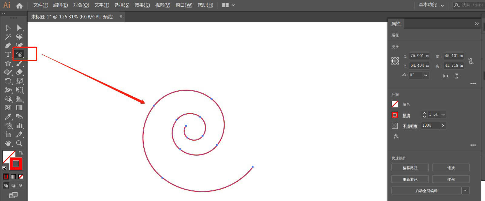 1、选择螺旋线工具,拉出一个螺旋线形状,如图