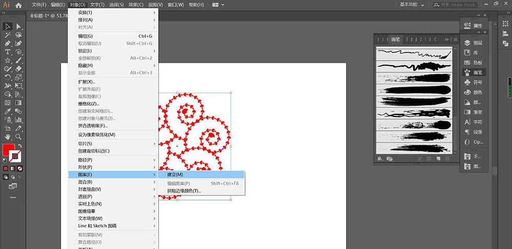 6、执行“对象”——“图案”——“建立”,设置参数如图,点击完成,此时是几何图案已在色板中