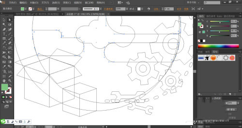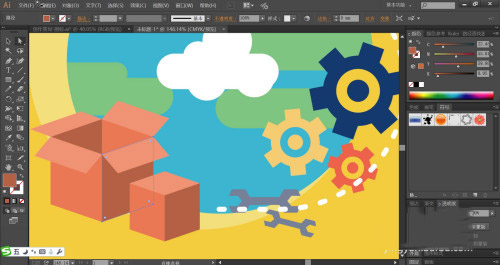 这一步,我们画出代表货物的不同形状的箱子,再画出代表服务的扳手与齿轮的路径。