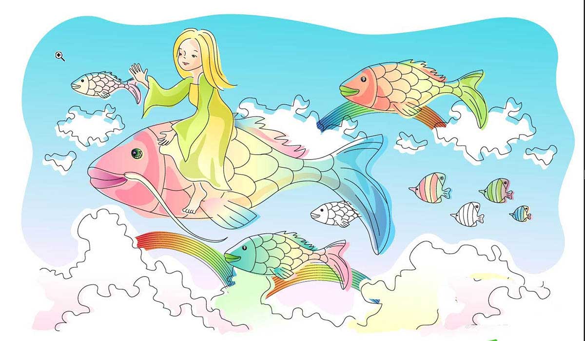 梦中的一切都是那么的美好,该怎么绘制这个梦幻的效果呢?今天,我们就来画一画梦幻飞鱼的漫画,从中学习一下飞鱼的画法,重点掌握用渐变色填充鱼的身体,体会使用半透明的色彩来呈现鱼身的明暗效果,学会用各种元素来烘托这种梦境的氛围,下面我们就来看看详细的教程。