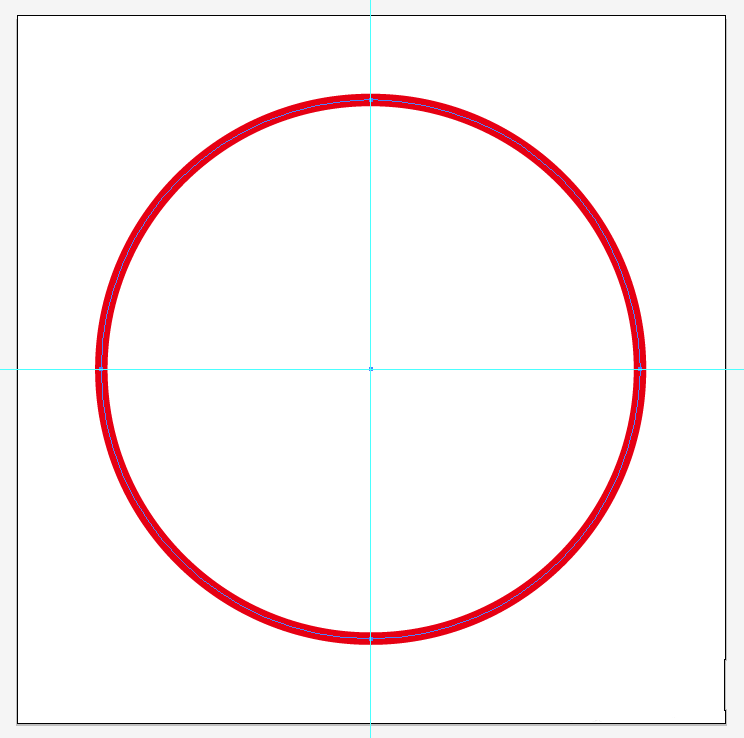 1、新建文档,调出标尺和参考线,画一个正圆,填充色为无,线条色为红色,描边设为100像素,如图。