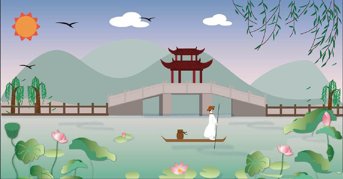 只要你留心就会发现美丽的风景处处都有,今天,我们就来画一画小桥荷塘,从中学习一下风景插画的画法,体会一下蓝天绿色的色彩使用搭配技巧,掌握绘制荷花的方法。