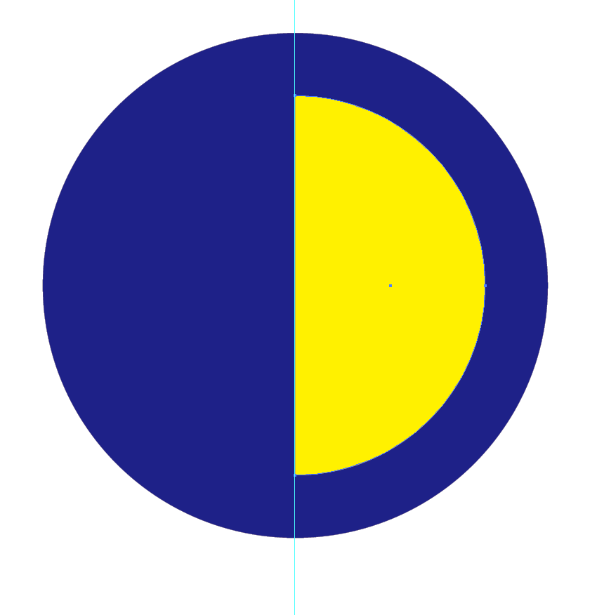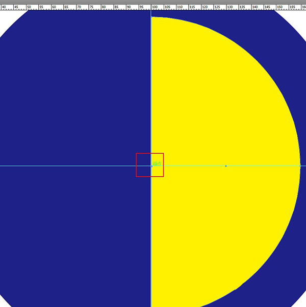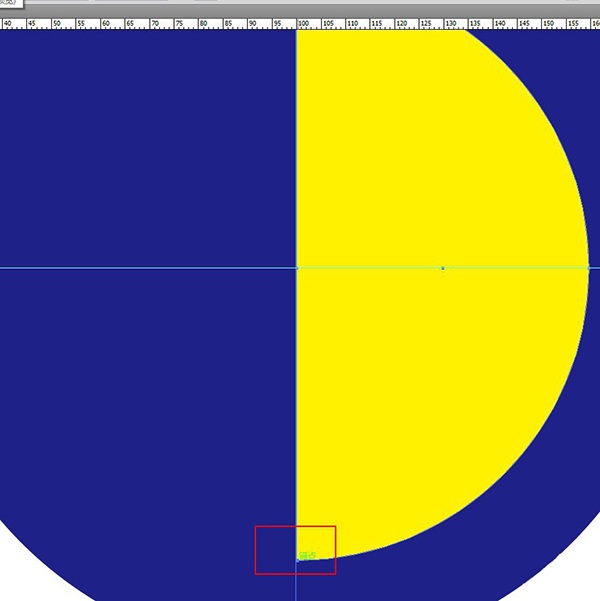 6、再选择半圆,选择钢笔工具里“删除锚点”工具,将如图所示位置的锚点删除,使之变成一个扇形,效果如图。