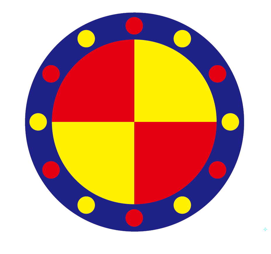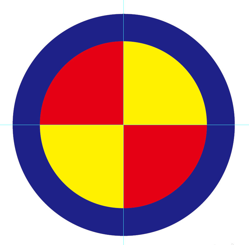 9、锁定大圆和4个扇形,在圆环上画一个小的正圆,并填充红色,如图。