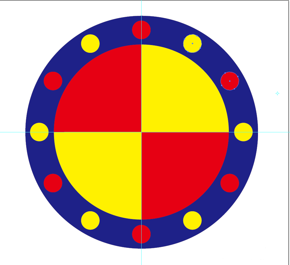 10、设置好旋转点,对小的正圆进行旋转复制,并更改其颜色,如图。