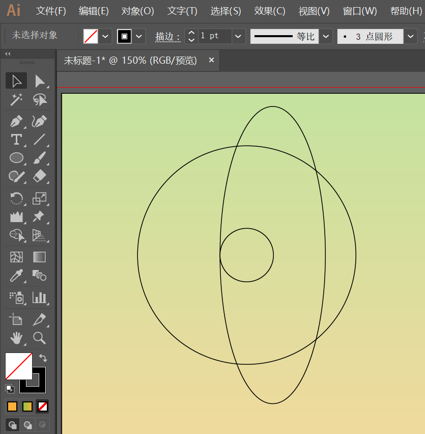 3、再使用椭圆工具绘制一个椭圆,使之与中心小圆相切;