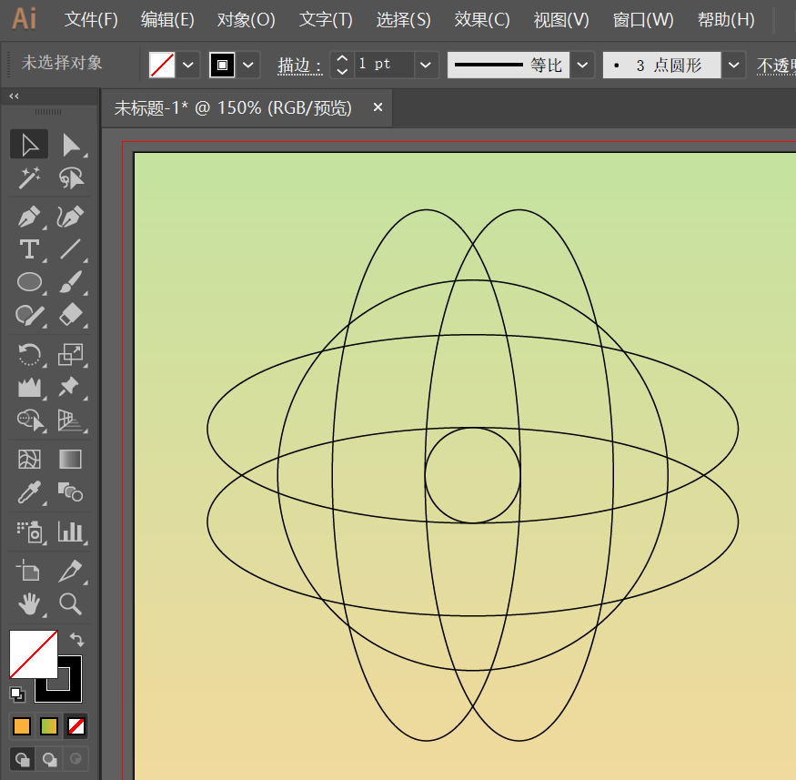 4、随后复制几个椭圆,同样与中心小圆成上下左右四个角度相切;