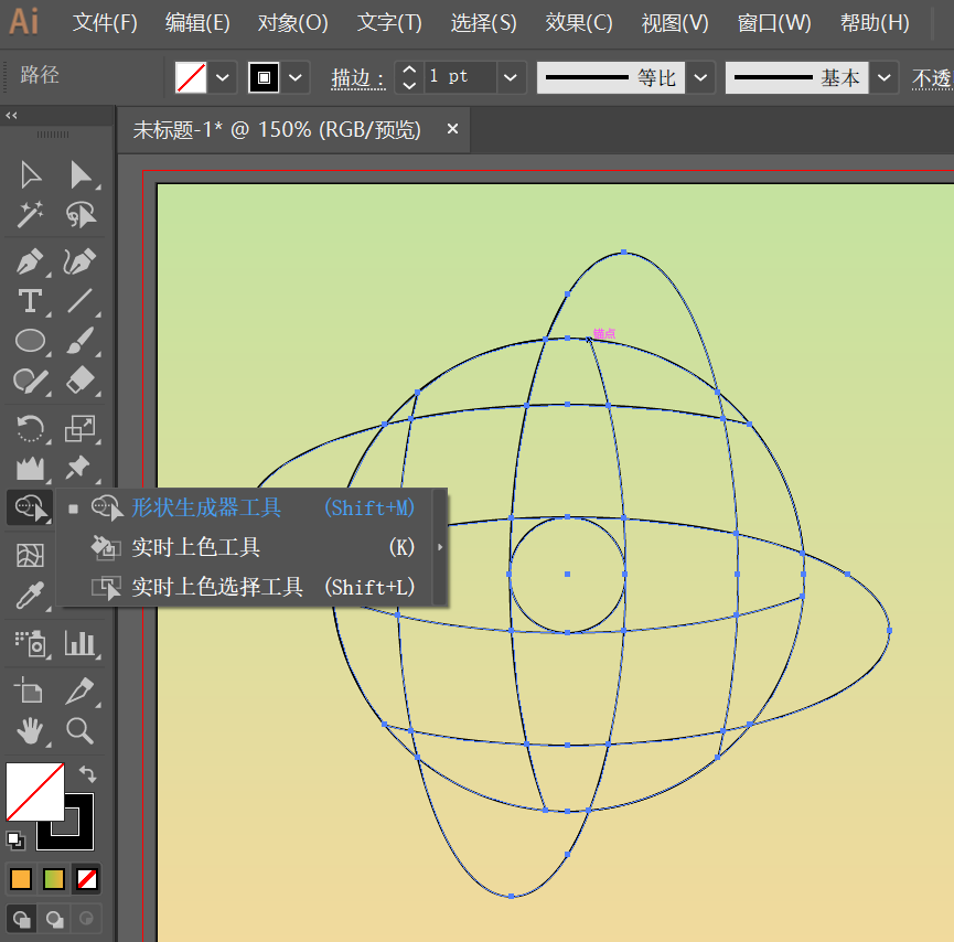 5、随后,使用形状生成器工具删除多余的部分;