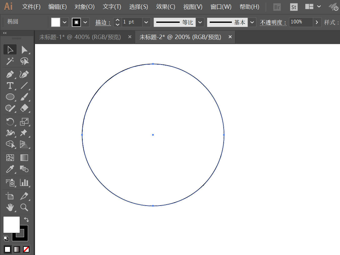 1、双击运行AI,新建一个空白画板,并用椭圆工具绘制一个正圆形;