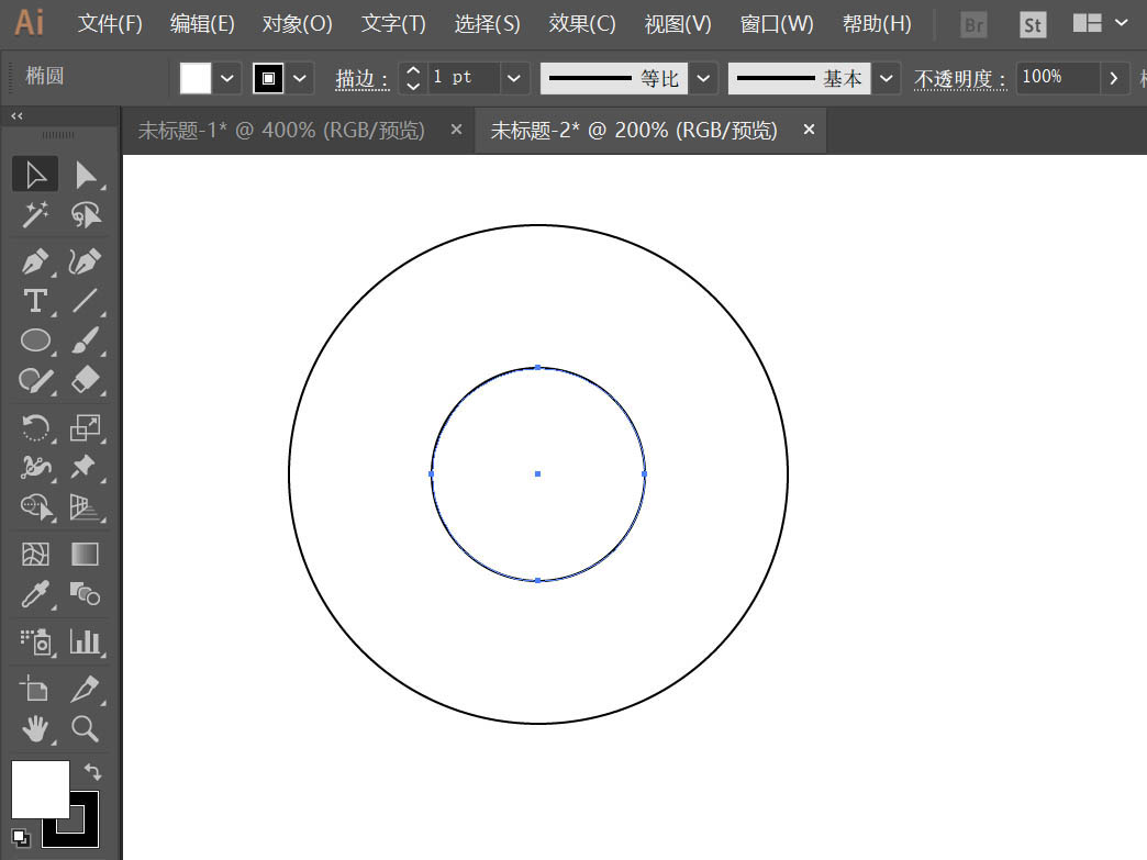 2、使用快捷键Ctrl+C、Ctrl+F复制一个正圆,并按住shift+Alt朝圆心成比例缩放;