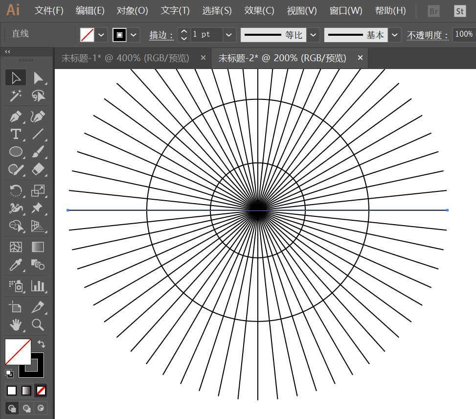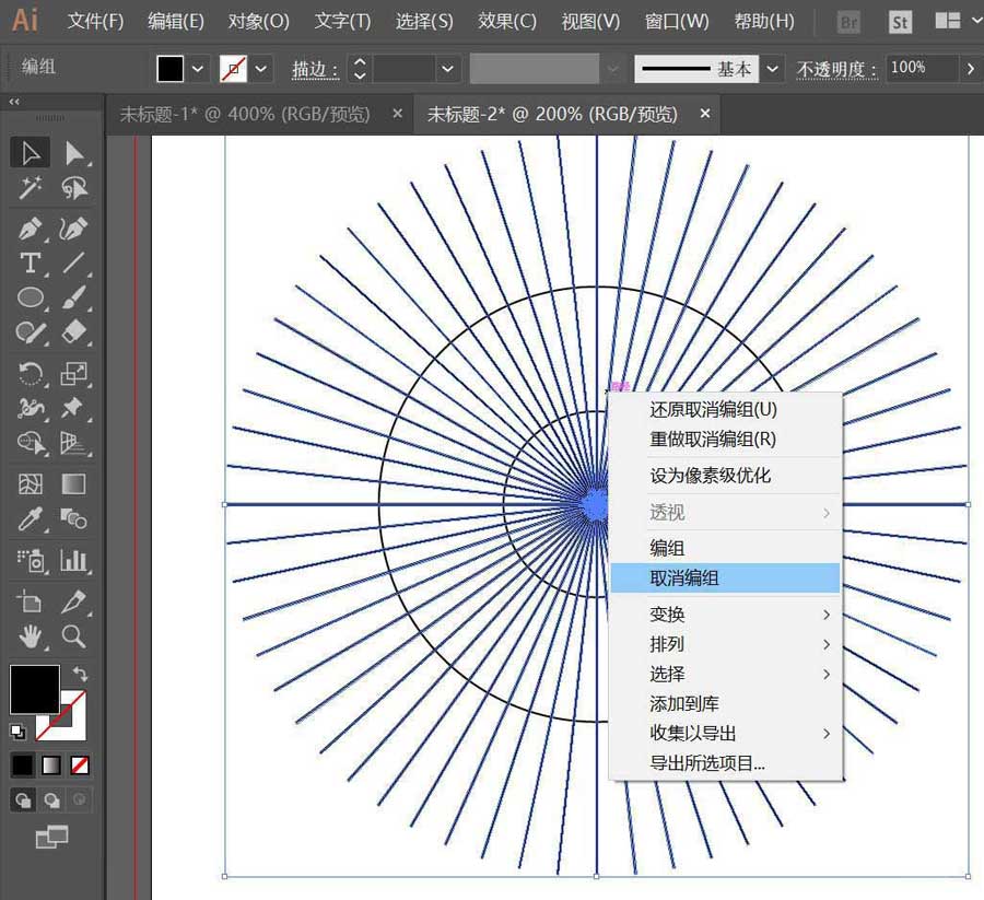 6、依次执行“对象”-“扩展”对旋转变换直线图案进行扩展外观处理,之后再取消编组;