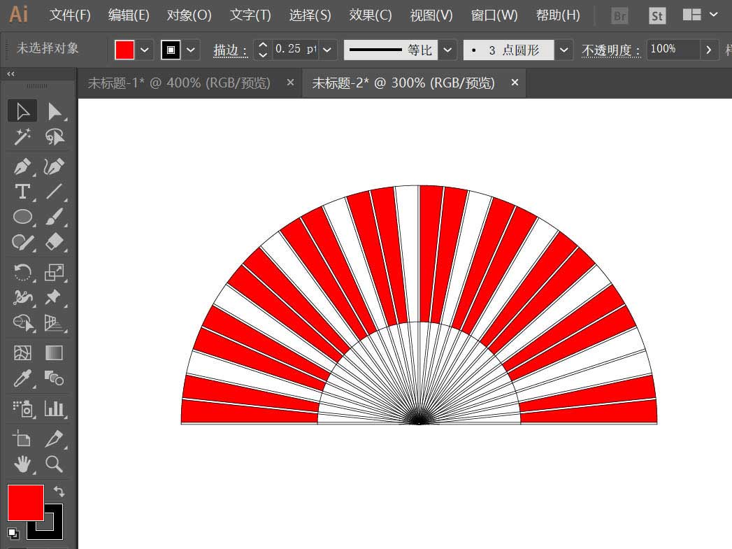 8、最后,使用直接选择工具删除不需要的部分,再使用形状生成器工具给每个部分填充颜色,这样一个扇子的图案就绘制好了!