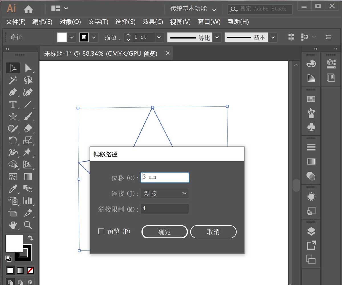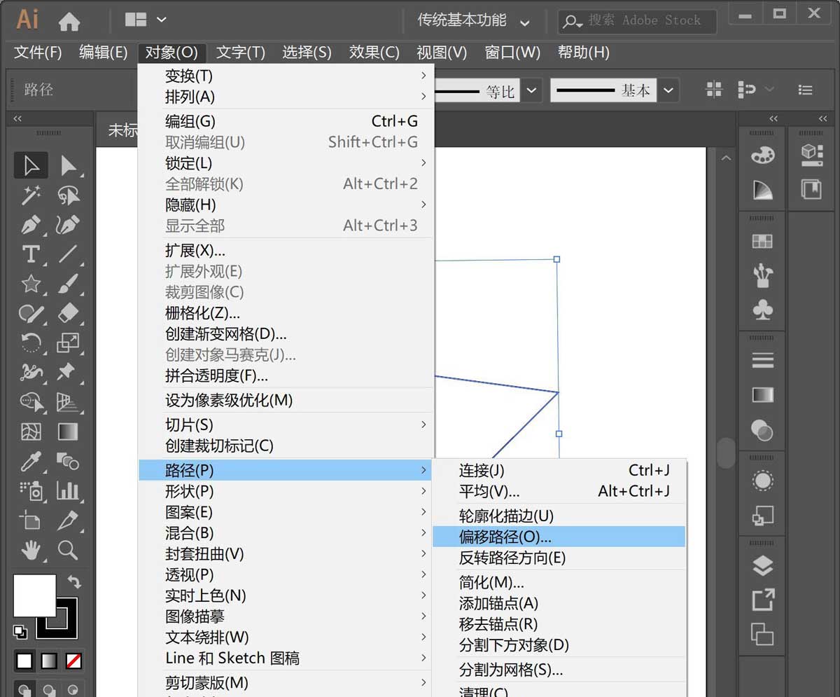 3、打开左上角菜单栏的“对象”——“路径”——“偏移路径”;