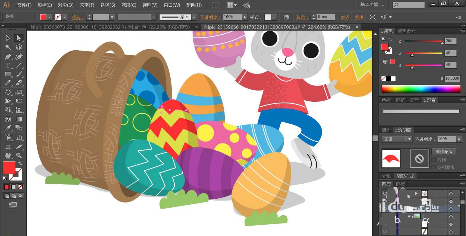 兔子在动画片里面总是给人一种调皮又快乐的形象,该怎么使用ai手绘调皮兔玩彩蛋的插画呢?今天,我们就来画一画调皮兔,从中学习一下调皮兔的画法,更好掌握灰色、红色、蓝色与其它各种色彩之间的搭配与应用,详细请看下文介绍。