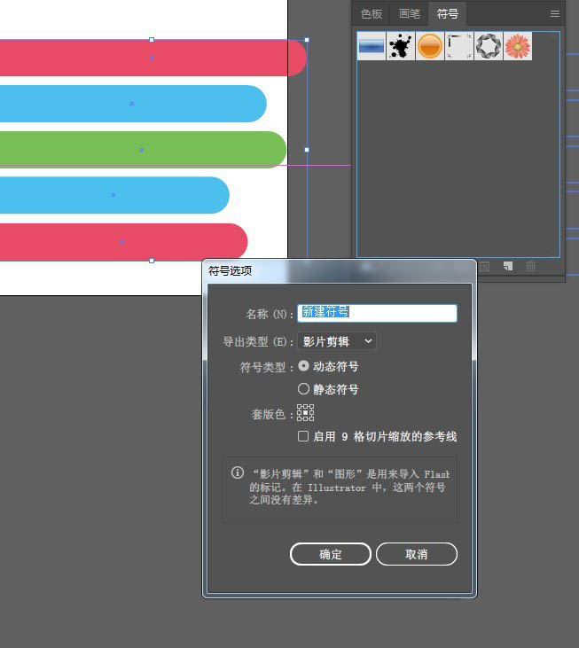 5、将文字和彩条旋转90度角,打开符号面板,将彩条和文字分别拖入面板中,新建符号。