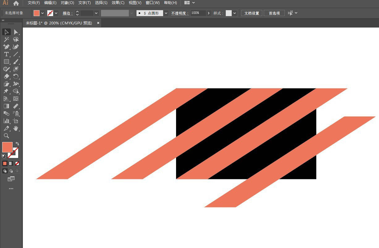 2、将橙色矩形放到大矩形上,底部对齐,用直接选择工具将它倾斜与大矩形右侧顶点对齐,再复制三个如图摆放。