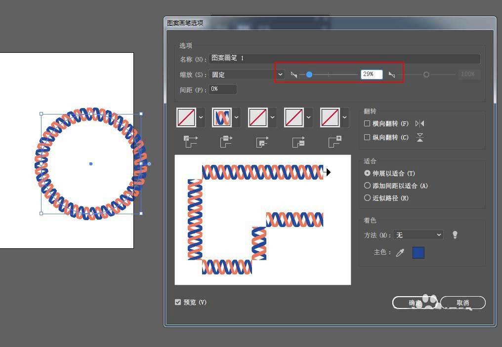 7、画个圆形,单击新建的画笔样式,就可以将其做为描边使用了。如果描边大了,可以缩小样式比例。