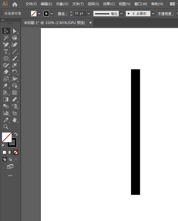 1、用直线工具画一条垂直的线,加粗描边。