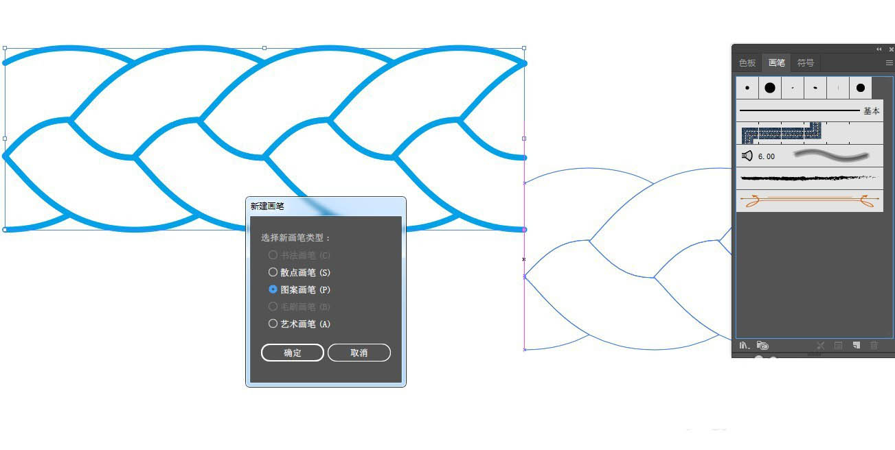 6、此时再绘制路径,点击新建的图案画笔,就可以给路径描边,最终效果如图: