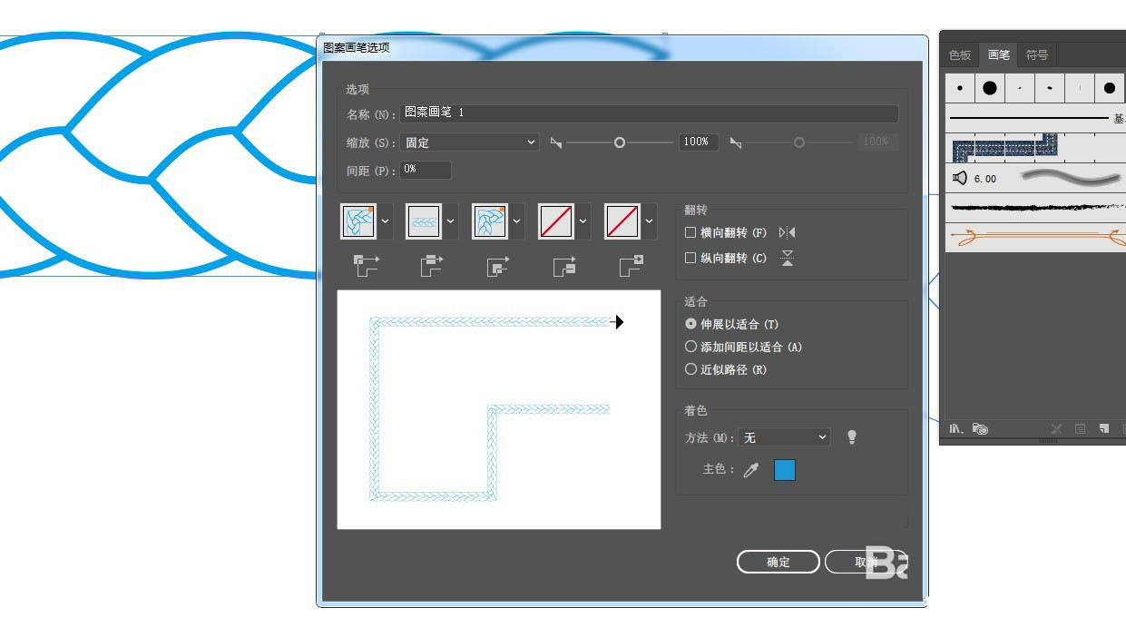 5、打开画笔面板,将做好的图形拖入画笔面板中,新建图案画笔。