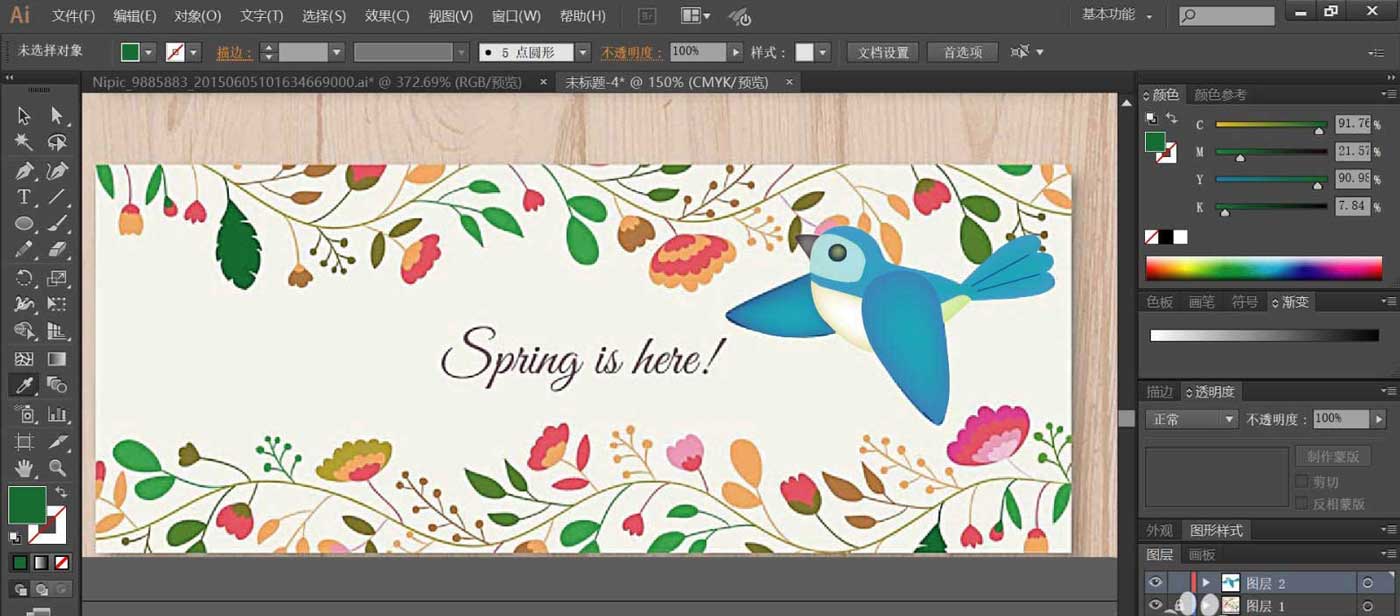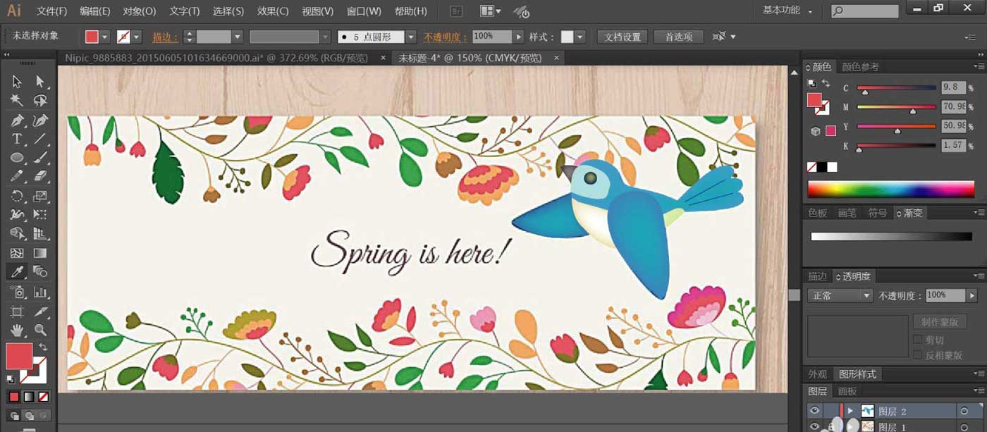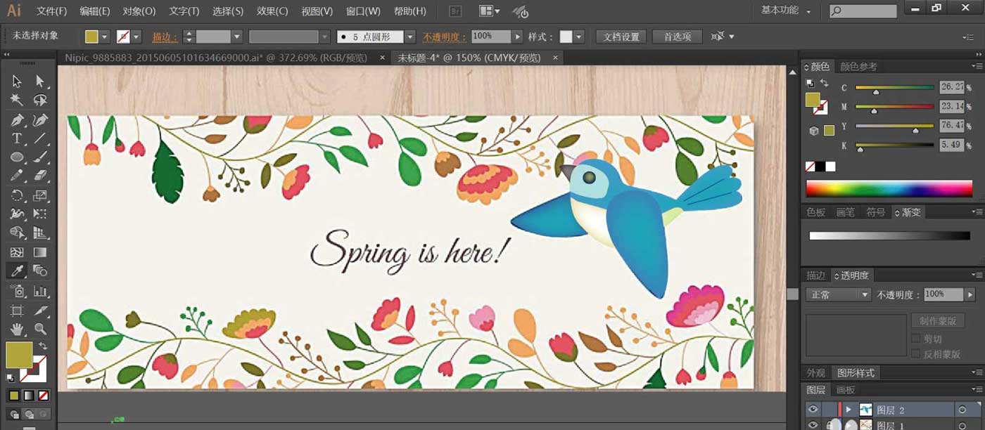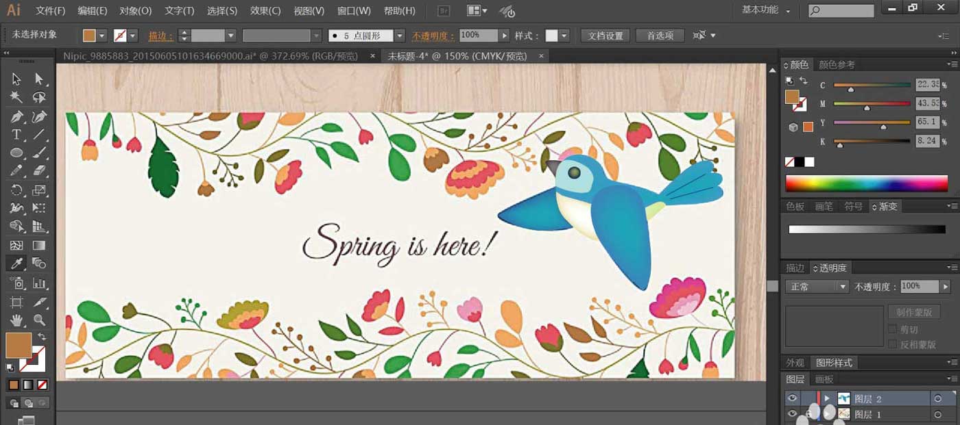 在春天有着各种各样的美景,飞鸟与花朵就是一种,该怎么设计这幅矢量图呢?今天,我们就来画一画飞鸟花朵的插画,从中学习一下飞鸟与花朵的绘制技巧与用色方法,掌握使用蓝白色与红黄色等多种套色的使用。