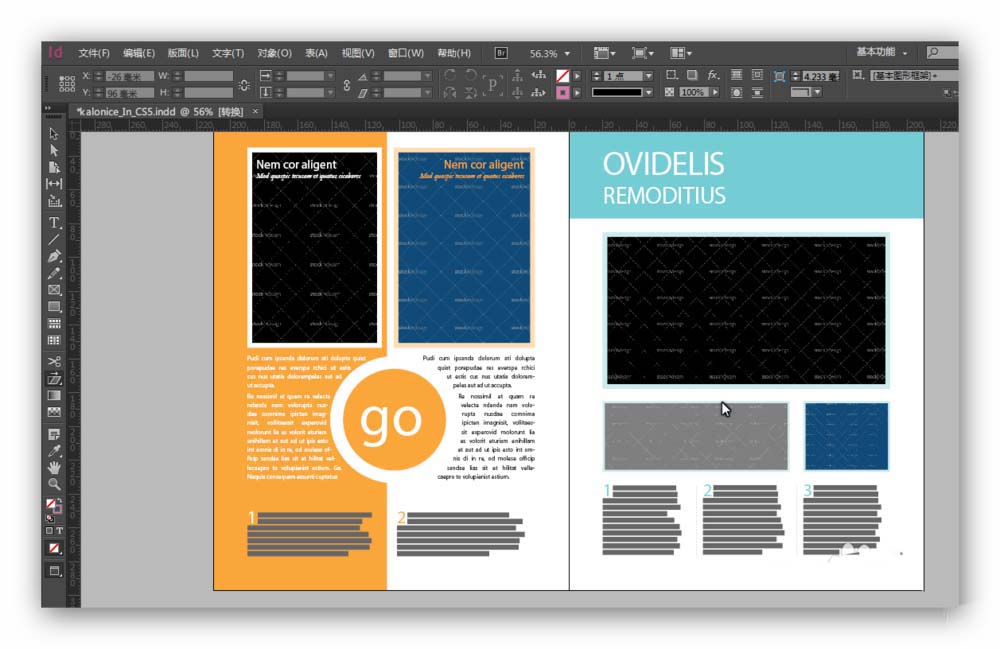 1、在Indesign之中,打开制作中的文档。